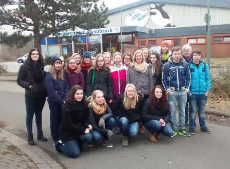 Als Dank und Anerkennung für ihre wöchentliche Arbeit besuchten die Mitarbeiterinnen und Mitarbeiter des schuleigenen Kiosks jetzt das Eissportcenter in Osnabrück. Nach der sportlichen Betätigung auf der Eisfläche stand der Besuch der Osnabrücker Innenstadt auf dem Programm. Mit jeder Menge neuer T-Shirts und Hosen begaben sie sich nach ausgiebiger Shoppingtour wieder auf den Rückweg nach Lastrup. Begleitet wurde die Fahrt von den für den Schulkiosk verantwortlichen Lehrkräften Frau Hukelmann und Herrn Zumdohme.